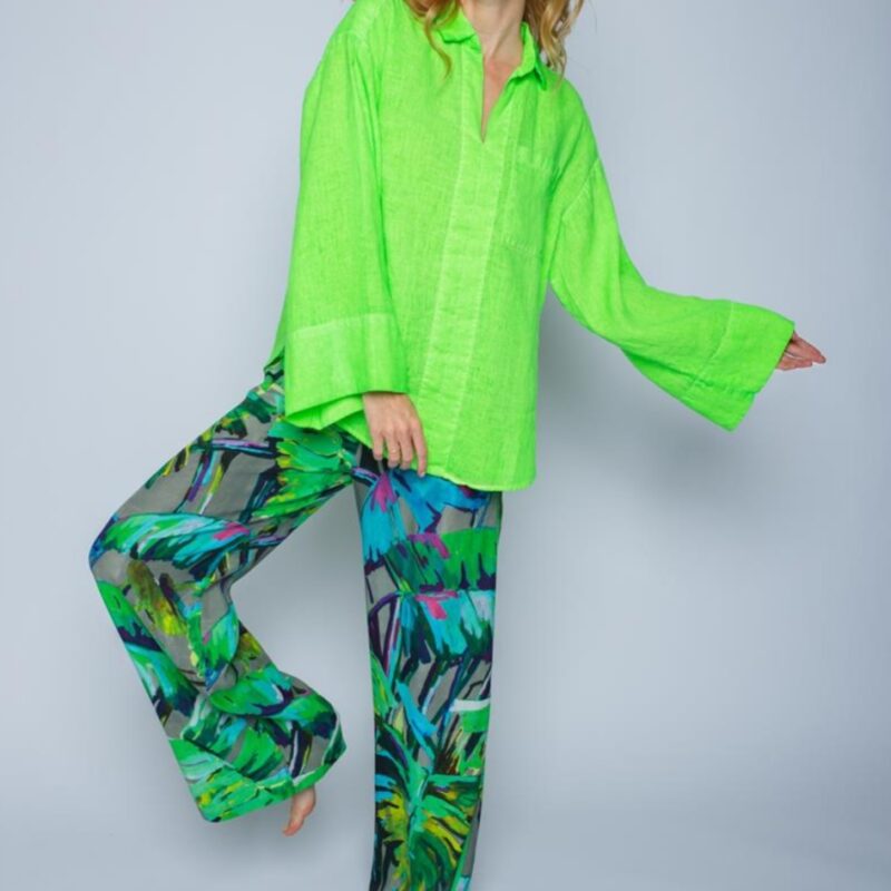 Emily van den Bergh: Superschöne Longbluse in offwhite und grasgrün 8410-152740-10