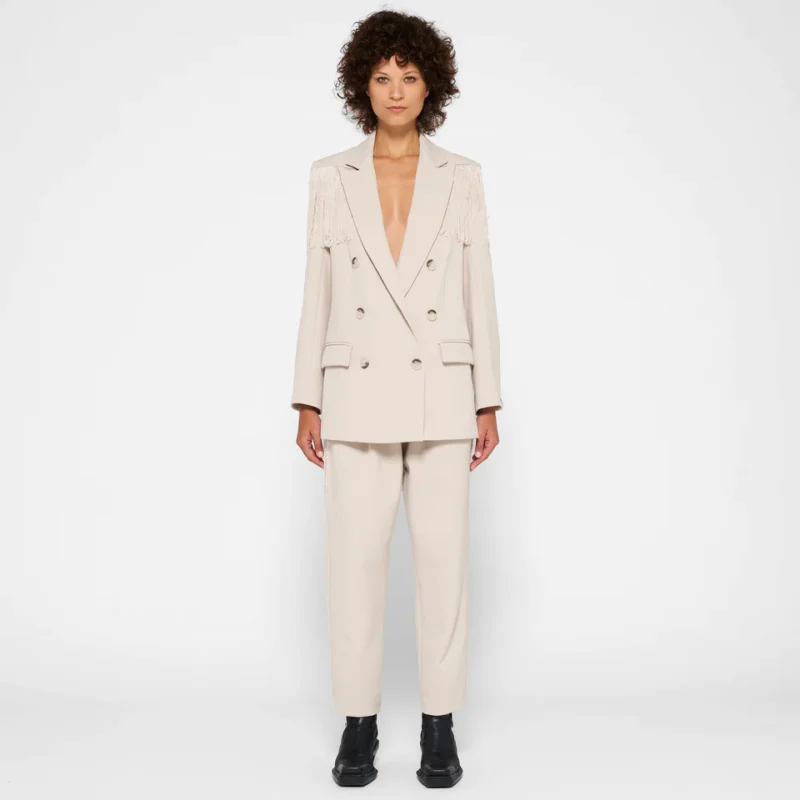 Emily van den Bergh: Bestseller Longbluse in weiß und taupe Style 4890-152744