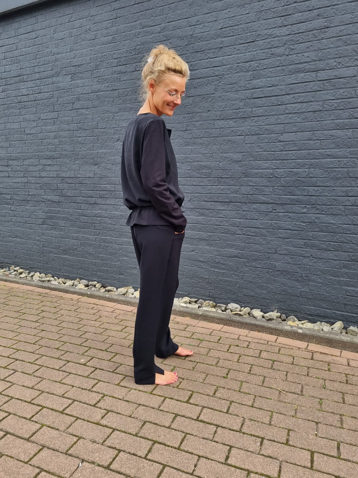 Hier eine ausgefallene schwarze Bluse, die FRAU sowohl sportlich als auch sehr schick tragen kann.