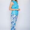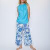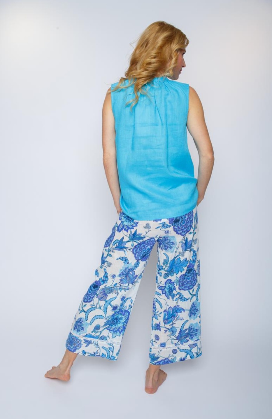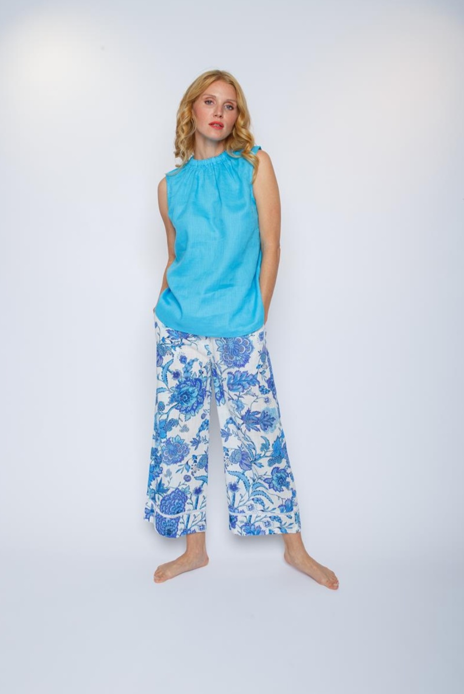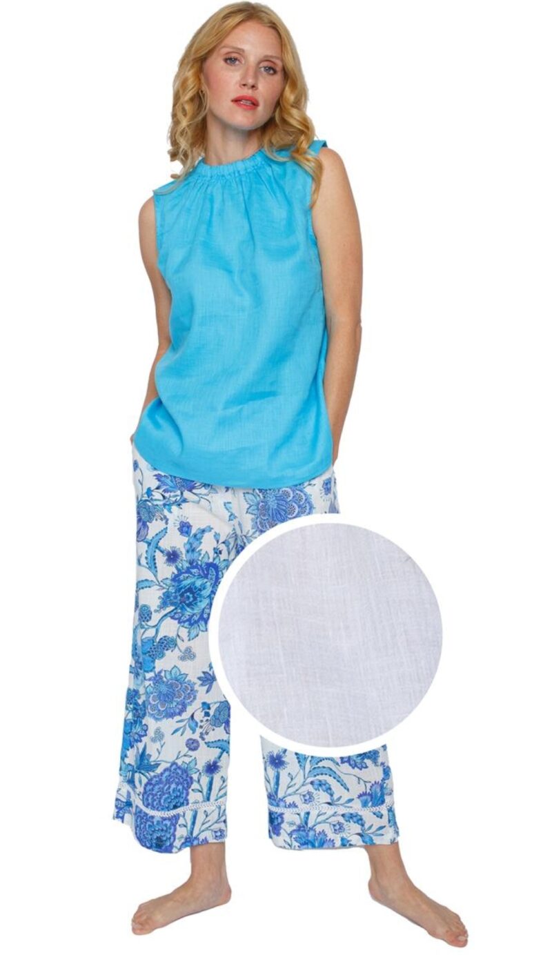 Emily van den Bergh: Blusentop Leinen in weiß und aqua 6362-154730