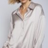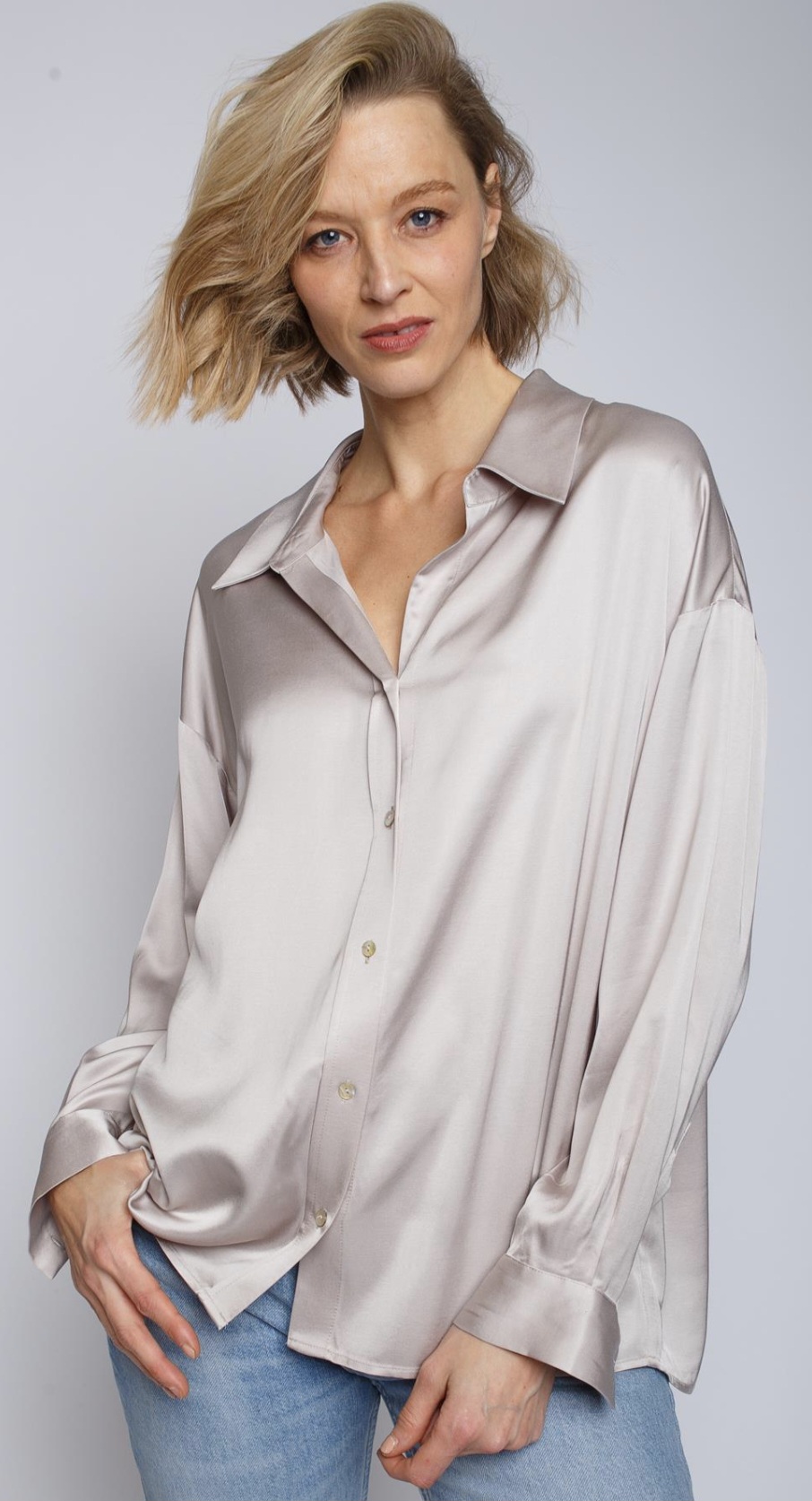 Emily van den Bergh: Oversized Hemdbluse in taupe und aqua 8410-155920-8