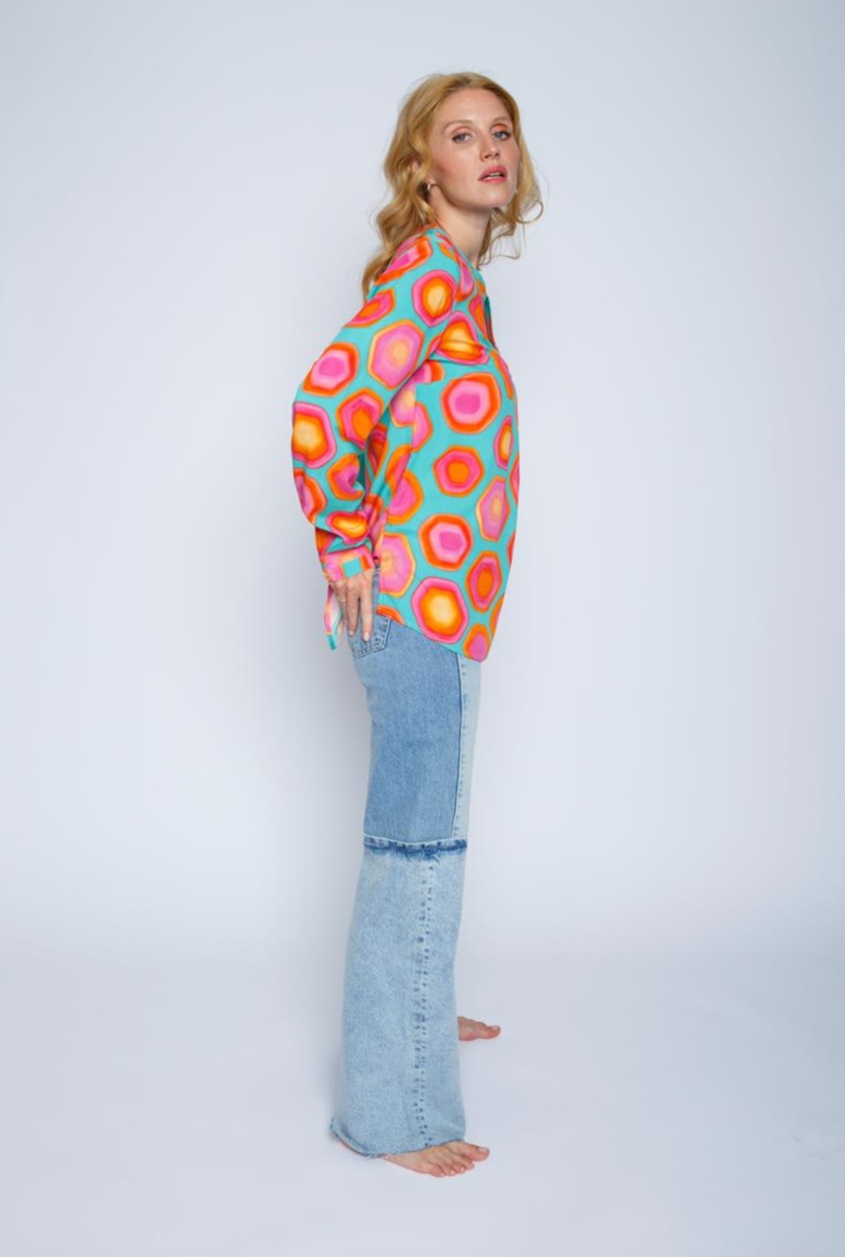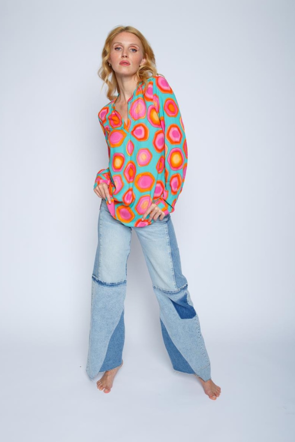 Emily van den Bergh: Viskosebluse in pink-orange dots 8110-143651