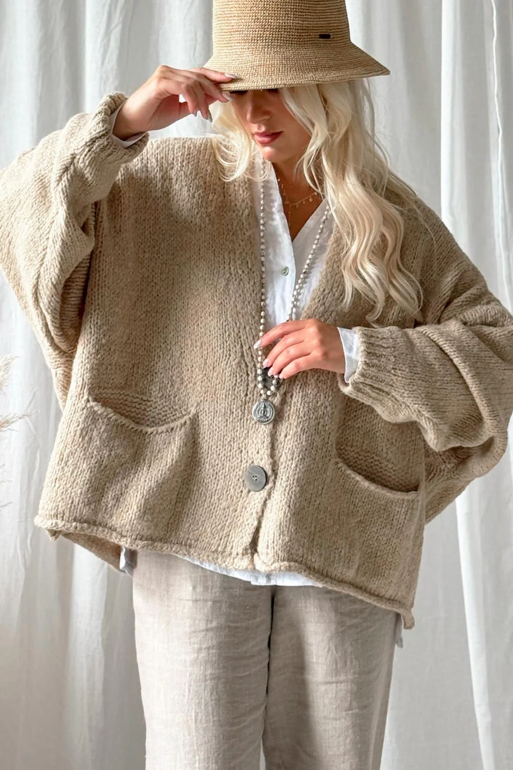 Wunderbar weiche Strickjacke mit V-Kragen, Knopfleiste vorne und Taschen