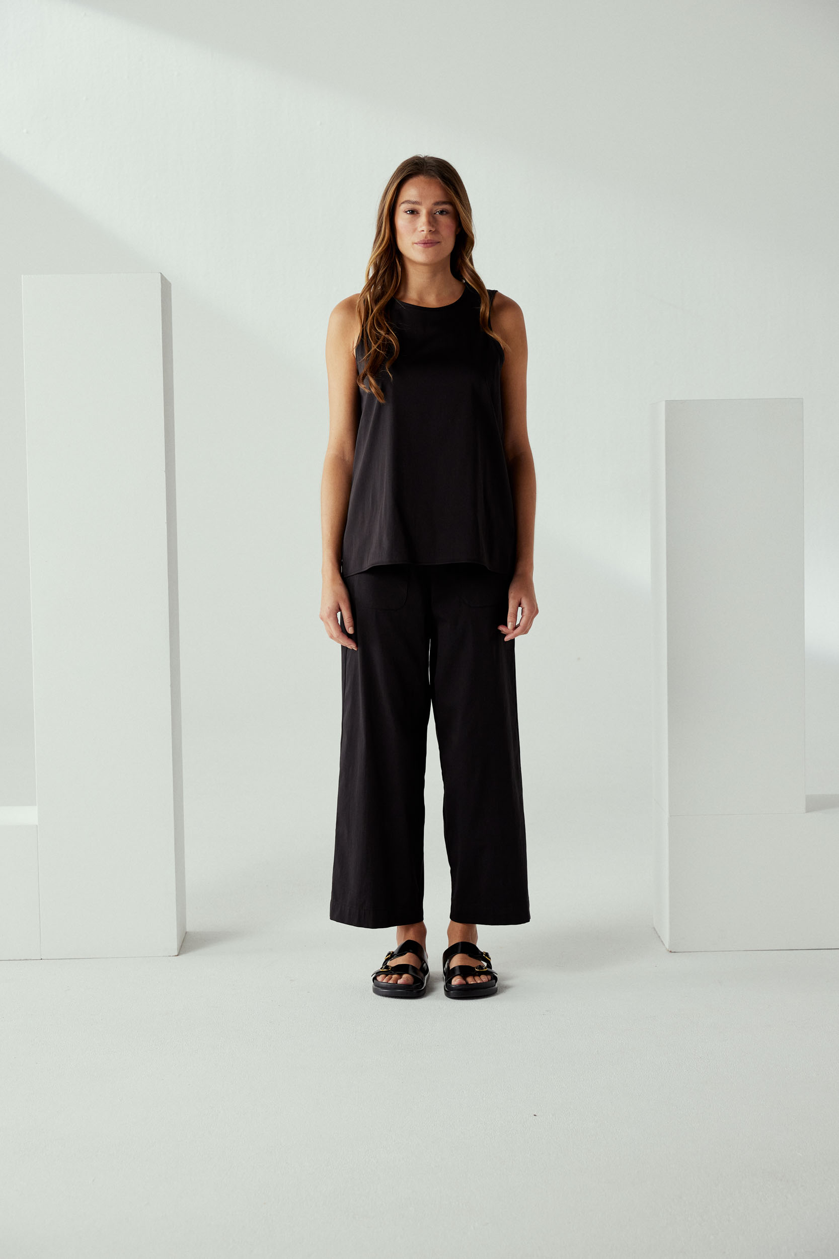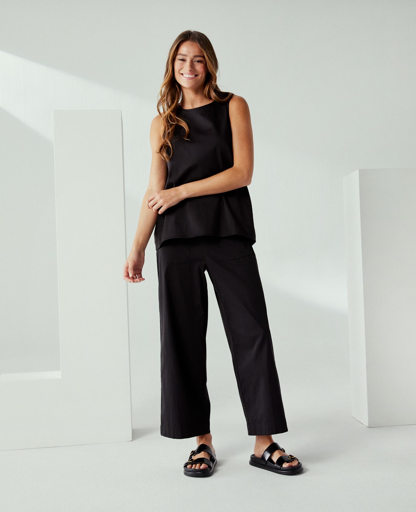 Smith & Soul: Gerade geschnittene 7/8 Hose 0524-0547 in schwarz und oatmilk