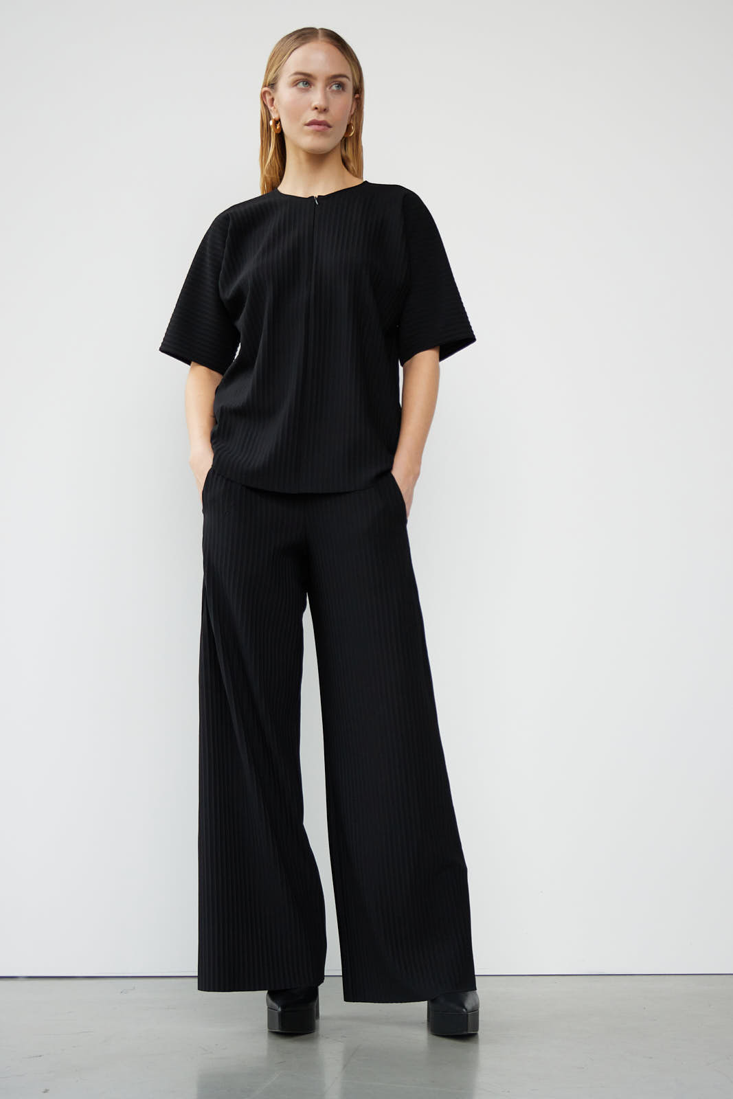 Coole, ausgestellte Hose in leicht gecrashtem Material mit Gummibund