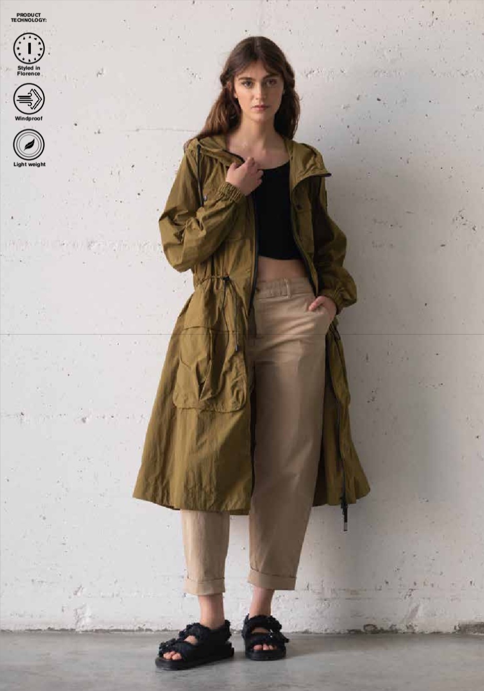 Maxi-Parka aus ultraleichtem Nylon mit matter Optik und knackigem Baumwollgriff