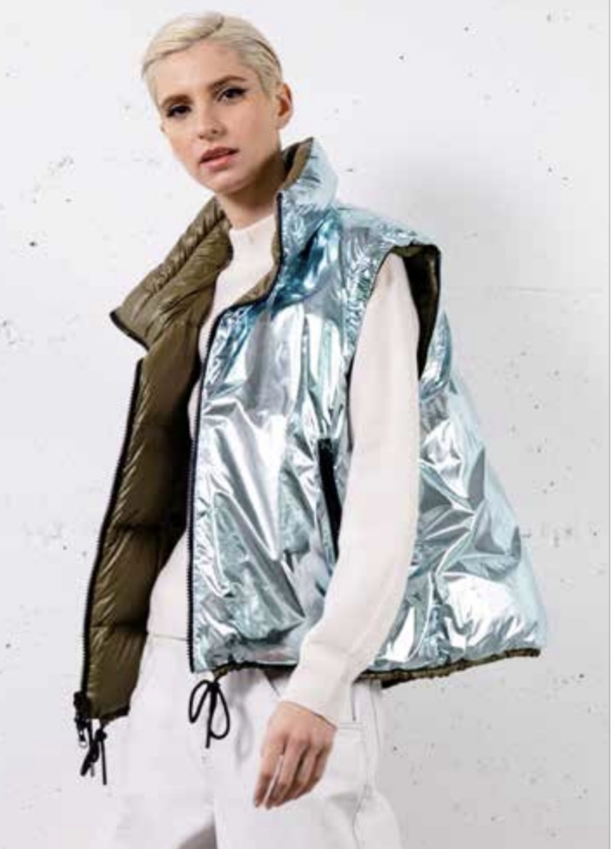 Inspiriert von einer zeitgenössischen Lebensweise, praktisch und flexibel, interpretiert es die Linien der essentiellen Oberbekleidung neu, wobei der Welt des Sports und der Freizeit besondere Aufmerksamkeit geschenkt wird, wobei die interpretative Vielseitigkeit und die abwechslungsreiche Tragbarkeit im Mittelpunkt stehen.