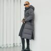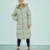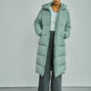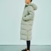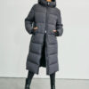 Wunderschöner langer Daunenmantel, entworfen in einer neuen technischen Qualität, der aus recycelten Fasern hergestellt wird, was das Produkt zu einer nachhaltigeren Ergänzung Ihrer Garderobe macht. Gleichzeitig verfügt die Jacke über die besten technischen Fähigkeiten und ist wind- und wasserdicht sowie schmutzabweisend. Die Jacke ist mit der erstaunlichsten Faser-Daunen-Mischung gefüttert, die Ihnen einen langlebigen Mantel mit einem fantastischen Puff-Touch verleiht, während die isolierenden Eigenschaften erstklassig sind, und Sie erhalten einen Mantel, der Sie warm hält.