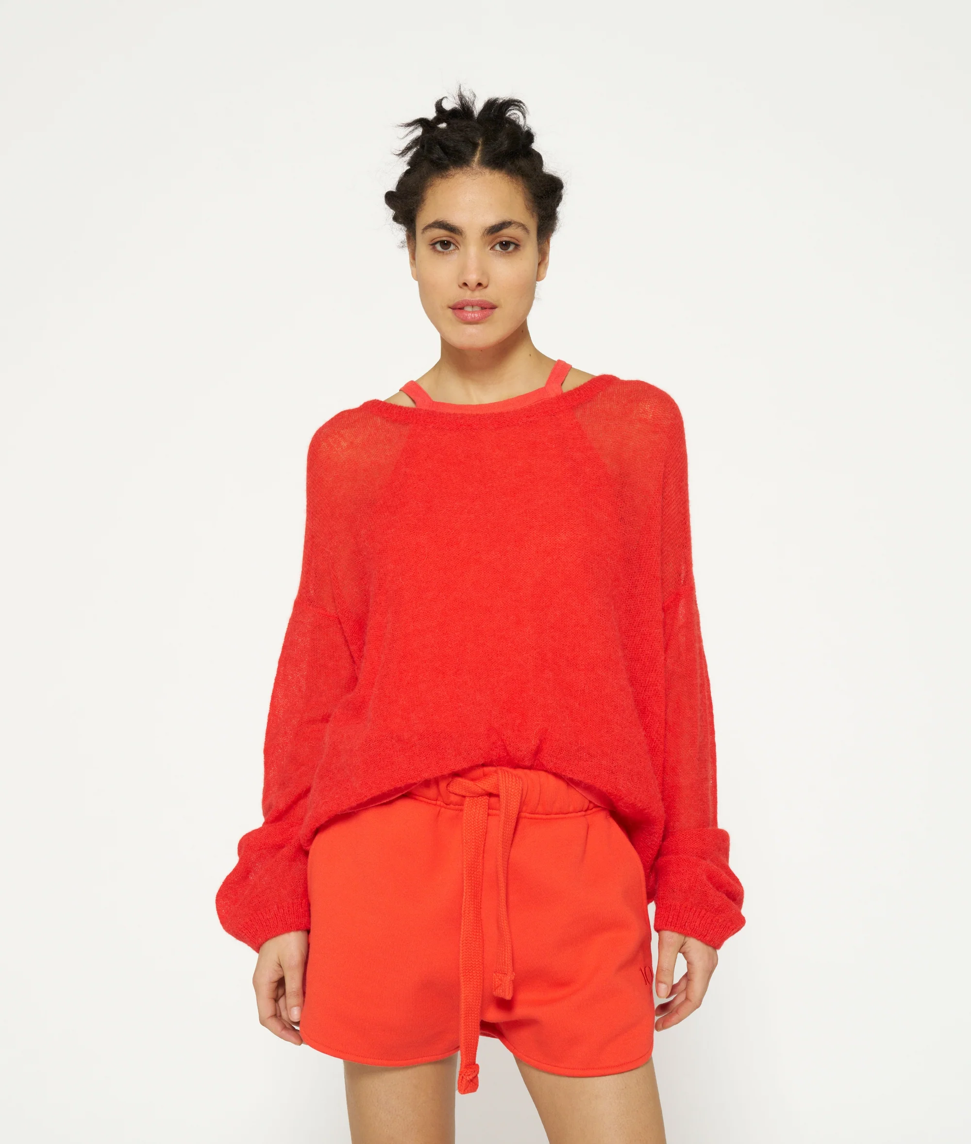 10DAYS: SWEATER THIN KNIT mit 50% Alpaka in violet und poppy red