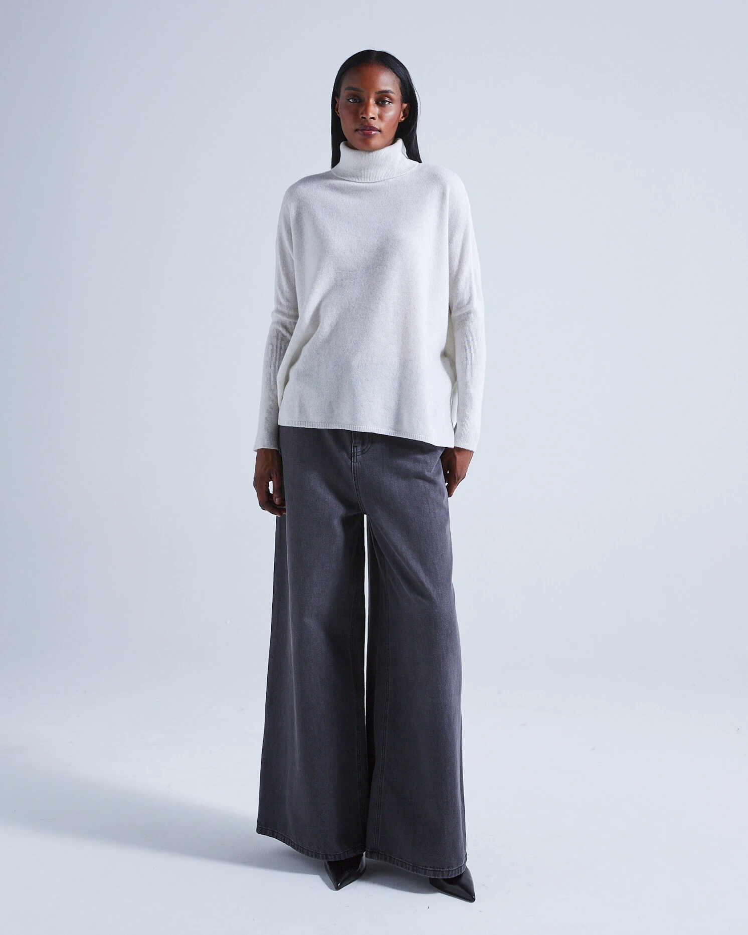 Rollkragen-Poncho-Pullover