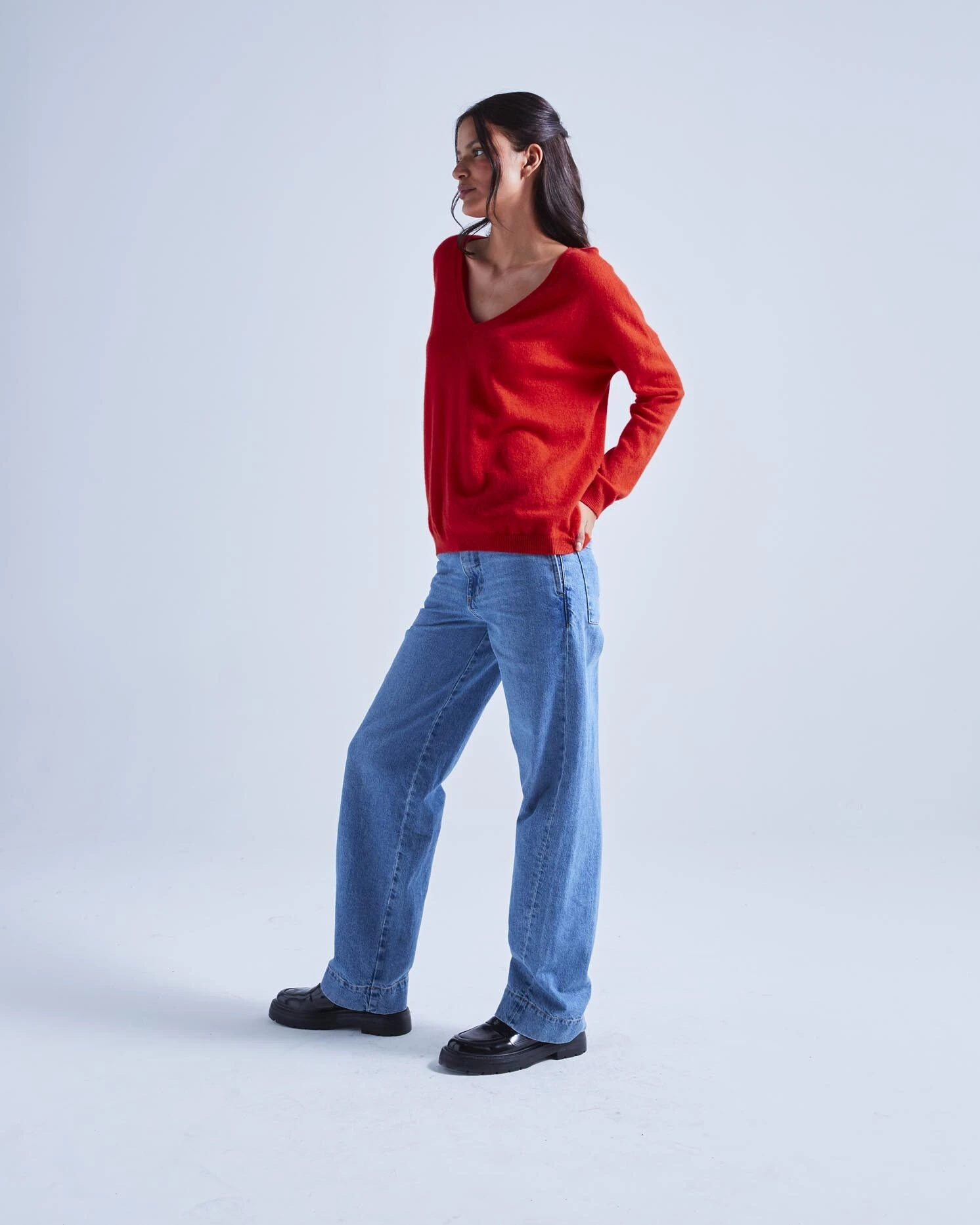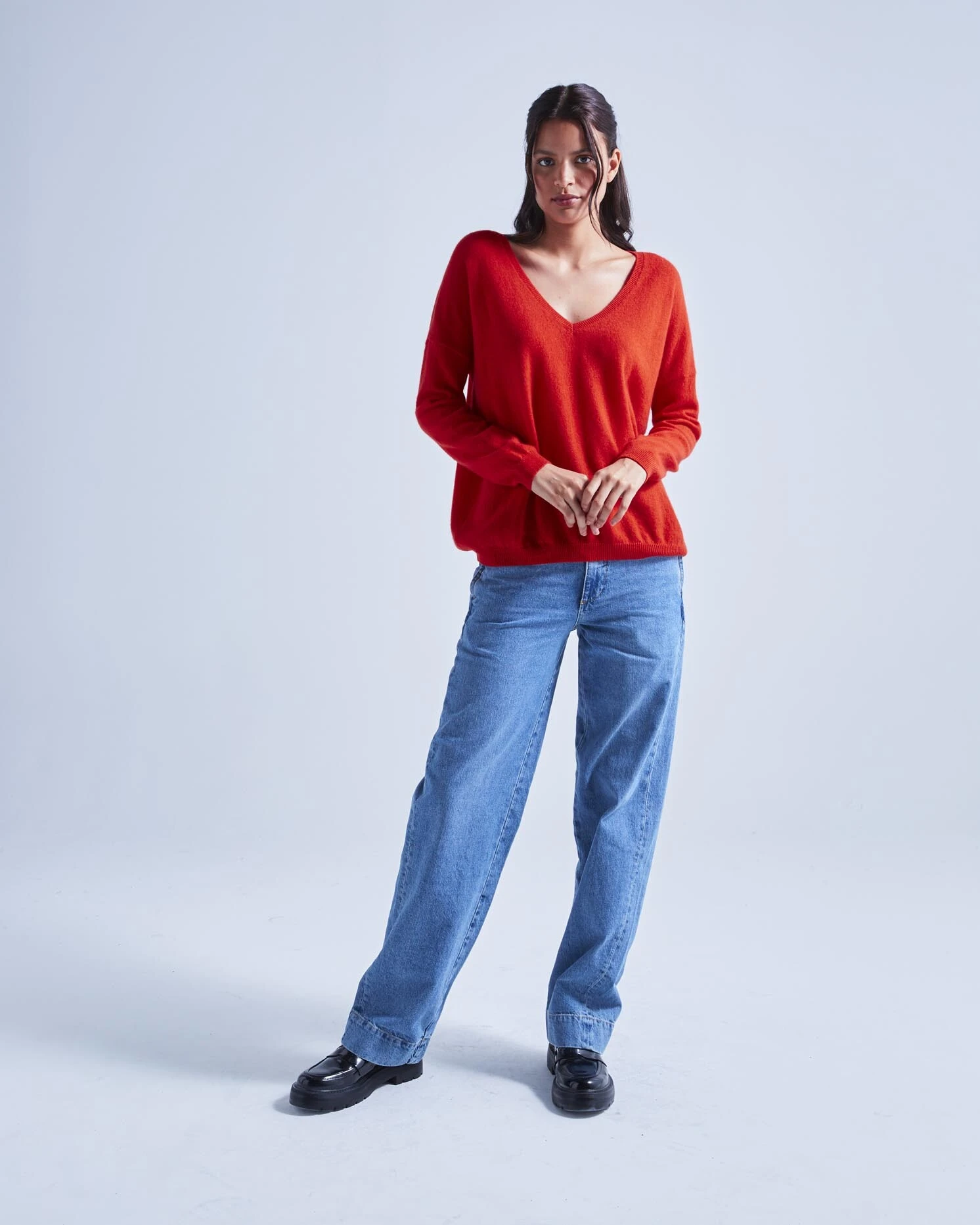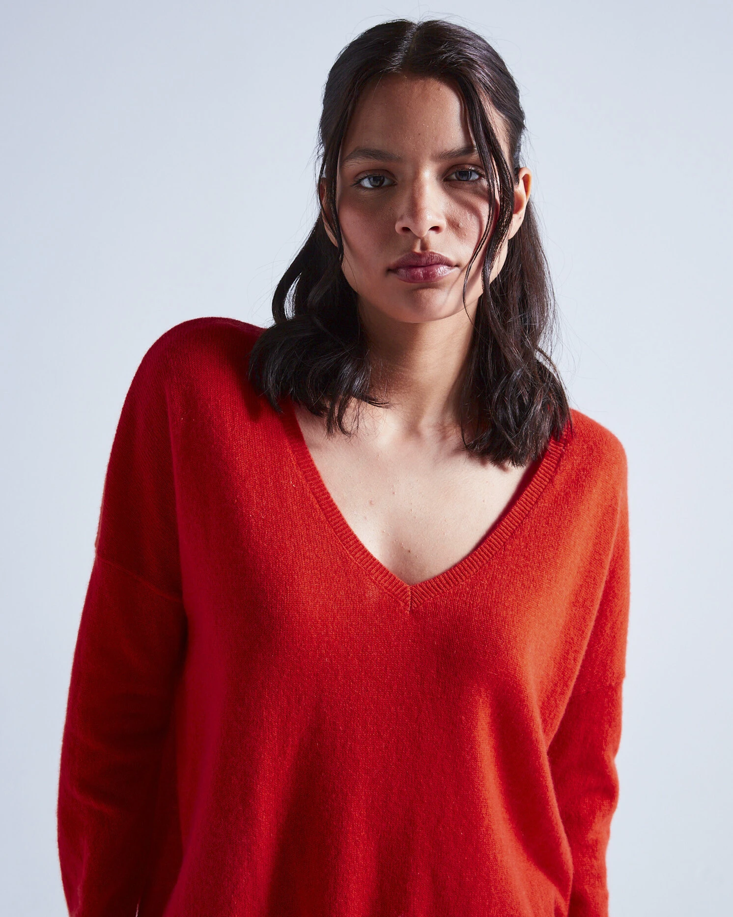 Oversized-Pullover „Angele“ aus 100 % Kaschmir mit V-Ausschnitt