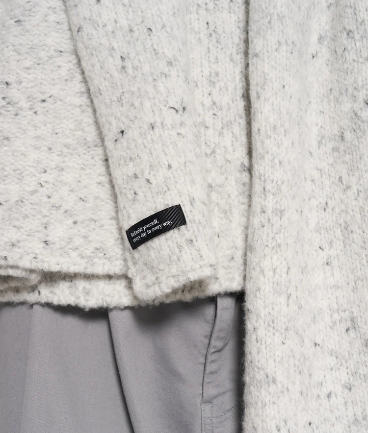 Großer Grobstrickschal aus einem weichen, melierten Wollmix. Mit einem Tagline-Label in der Ecke des Schals und einem 10DAYS-Label entlang der langen Seite. Maße: 230 x 50 cm.