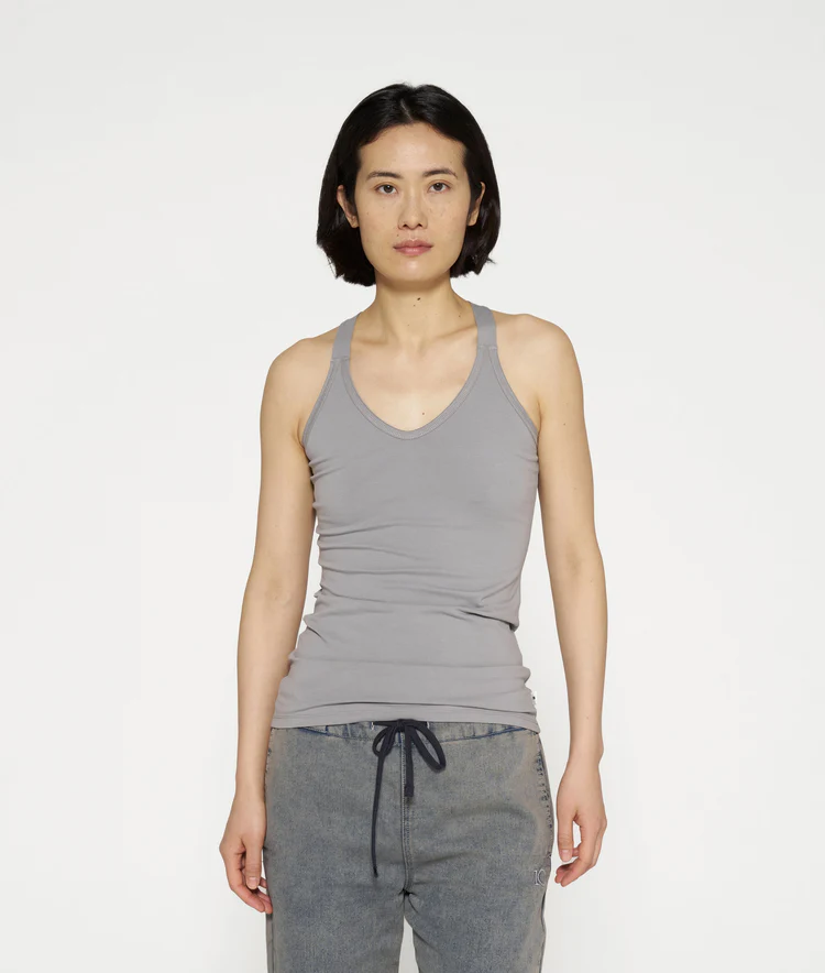 Slim Fit Singlet Top mit im Rücken gekreuzten Trägern, gefertigt aus Jersey aus GOTS-zertifizierter Bio-Baumwolle. Mit Vintage-Finish am Halsausschnitt und einem applizierten Mini-Stripes-Logo am Rücken.