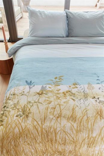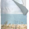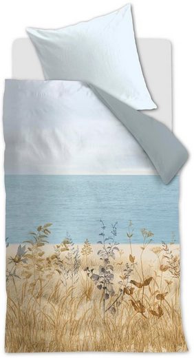 Die Bettwäsche Dunes präsentiert sich mit einer sommerlichen Meereslandschaft. Im Vordergrund sind Dünen mit Dünengräsern und Blumen in Natur- und Grautönen abgebildet. Im Hintergrund sieht man den Strand, das Meer und einen leicht bewölkten Himmel. Die Rückseite des Bettbezugs ist einfarbig in Blaugrau gehalten. Hochwertige Qualität Die Bettwäsche besteht aus 100 % Baumwolle, 144 TC. Baumwolle ist ein atmungsaktives und feuchtigkeitsaufnehmendes Naturprodukt. Die Bettwäsche fühlt sich durch die spezielle Verarbeitung komfortabel und angenehm weich an. Der Bettbezug ist mit einem Reißverschluss ausgestattet.